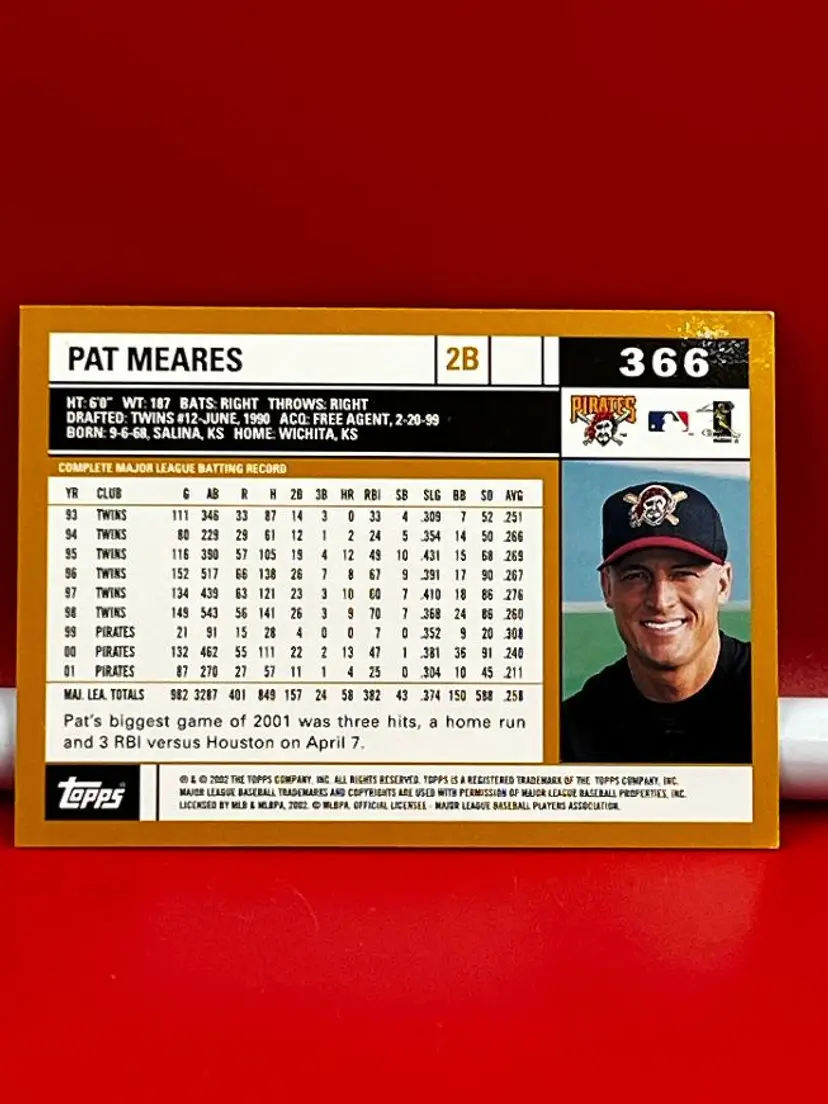 Hello, what we have is a Collector Trading Card by: Topps. Year: 2002. Sport: Baseball. Team: Pirates. Player: Pat Meares.