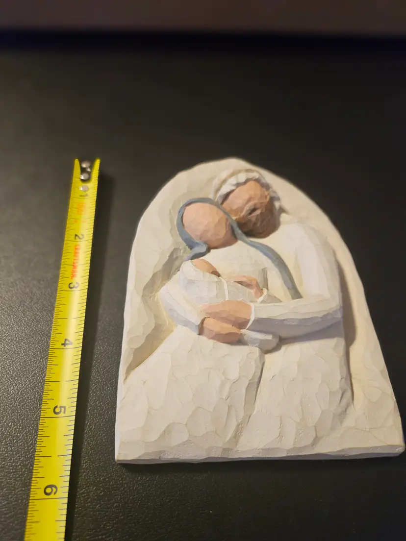 Beautiful sculpture of a loving embrace. Crafted in calming cream and tan hues. Perfect for any home decor.