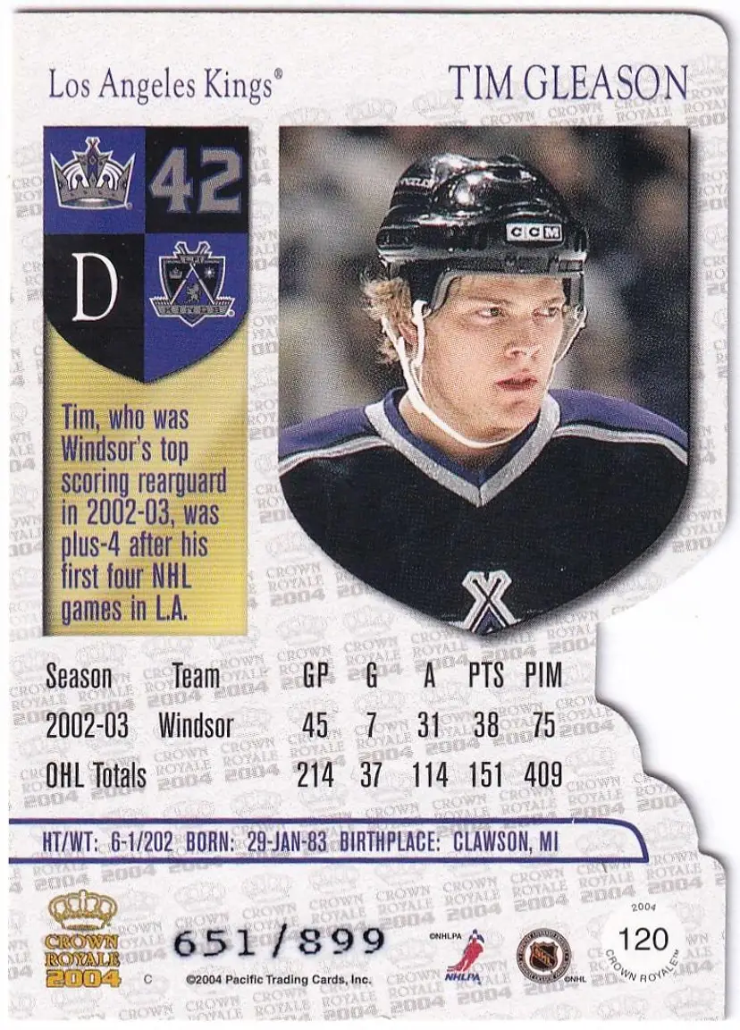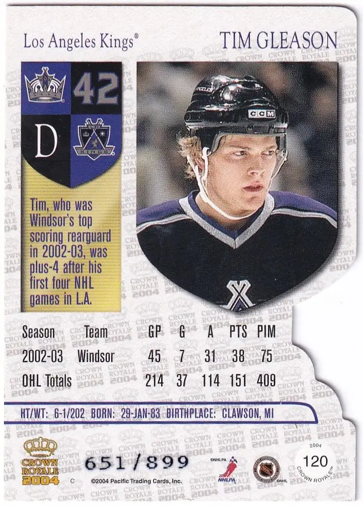 2003-04 Crown Royale Retail #120 Tim Gleason RC Los Angeles Kings Print Run - 899