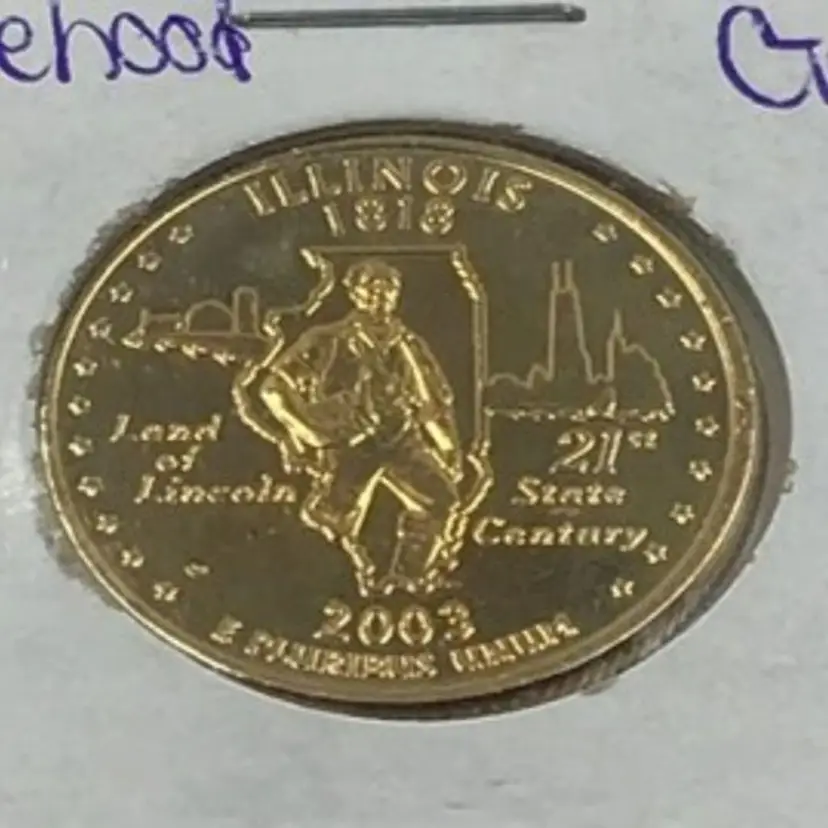 Hello, what we have is a Collector Silver Coin from the U.S. Mint. Year: 2003-D Series: Washington Den. Quarter Graded: no-us-Gem Bu Note: 24 kt Gold Plated by HSN