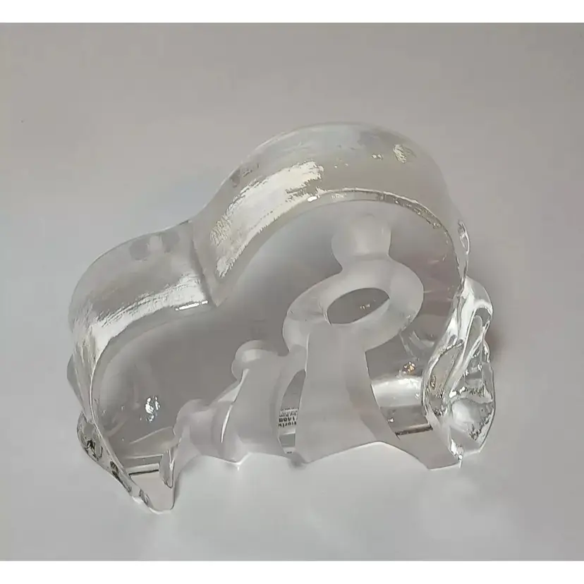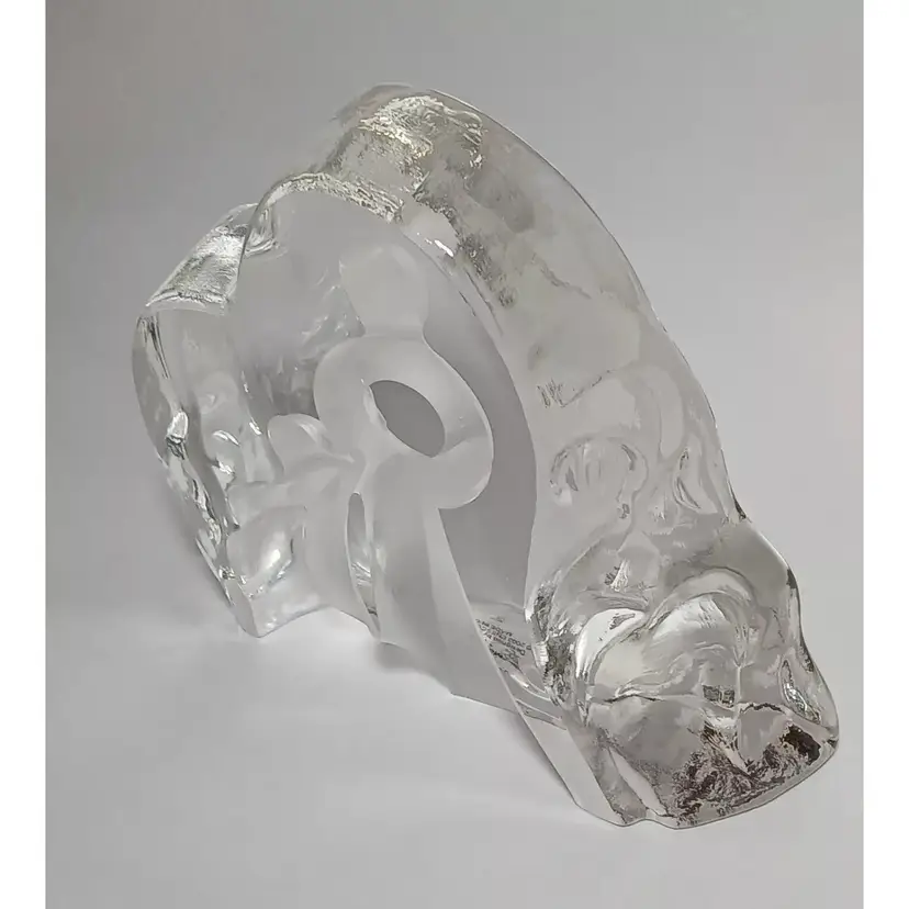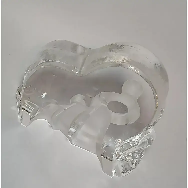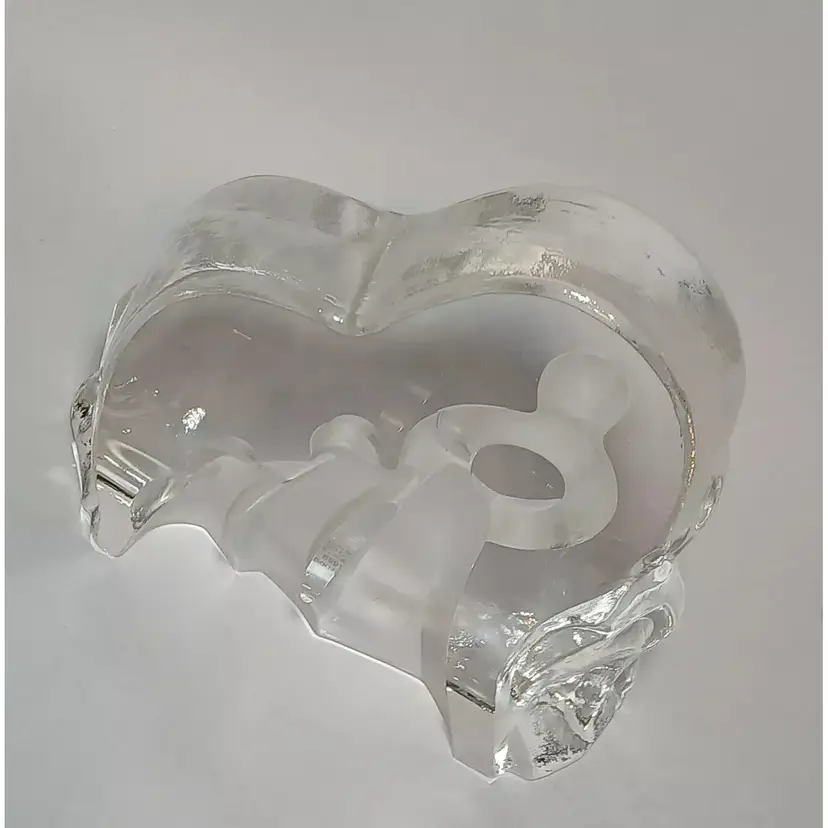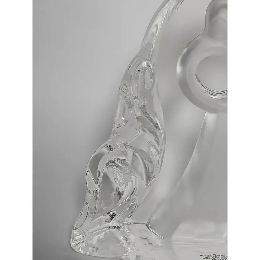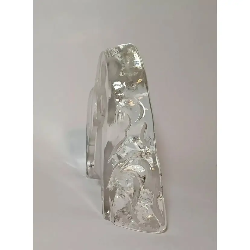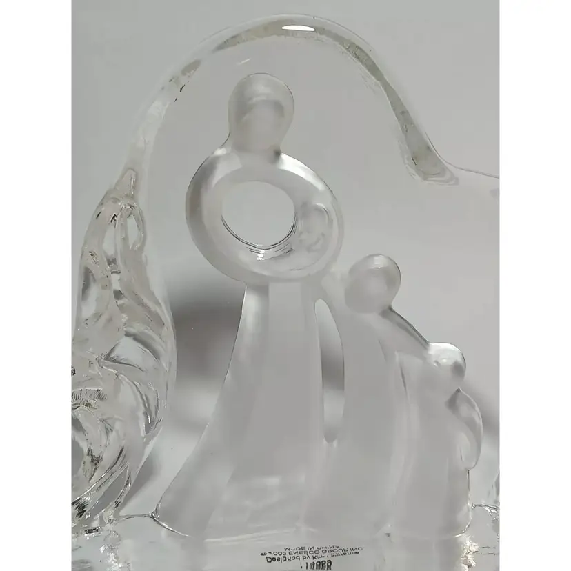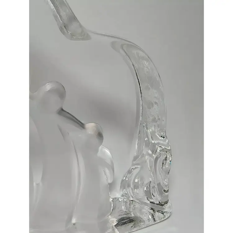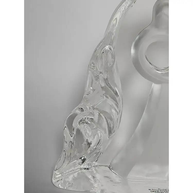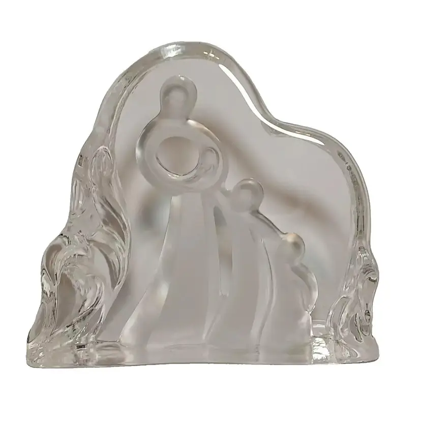 2003 Enesco crystal clear glass figure. "Motherhood" designed by Kim Lawrence #114659. Featuring a glass slab with a mother embracing her baby in her arms. Her 2 other young children are clinging to her side and each other. The figures are frosted for a nice contrast. The sides have a cascading texture. The original sticker is attached to the bottom. In great pre-owned condition with no chips or cracks. Please see my photos for details.