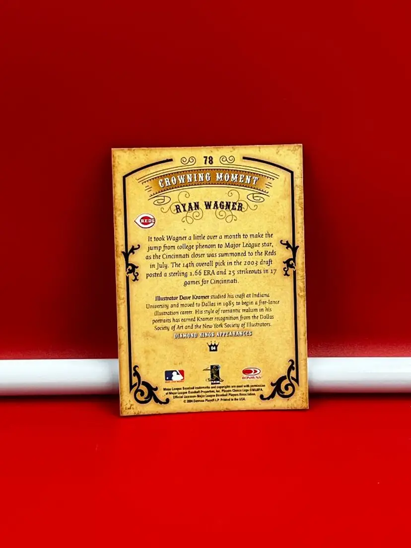 Hello, what we have is a Collector Baseball Card by: Donruss. Year: 2004. Series: Diamond Kings. Player: Ryan Wagner. Number: 18.