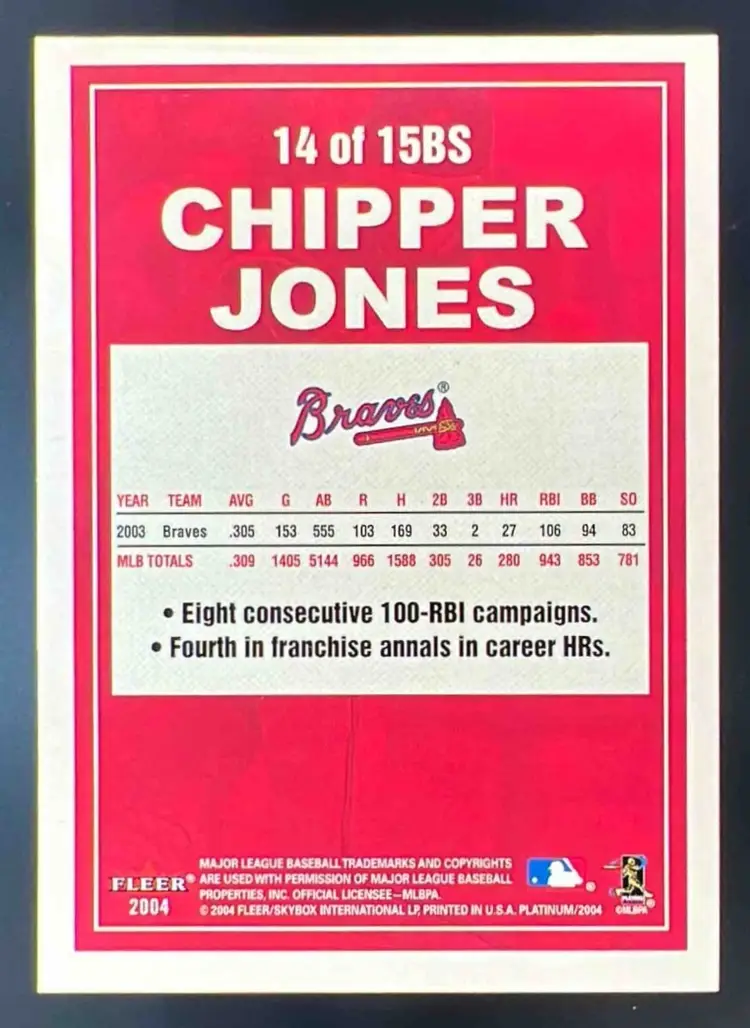 2004 Fleer Baseball Platinum Chipper Jones Big Signs #14BS Atlanta Braves