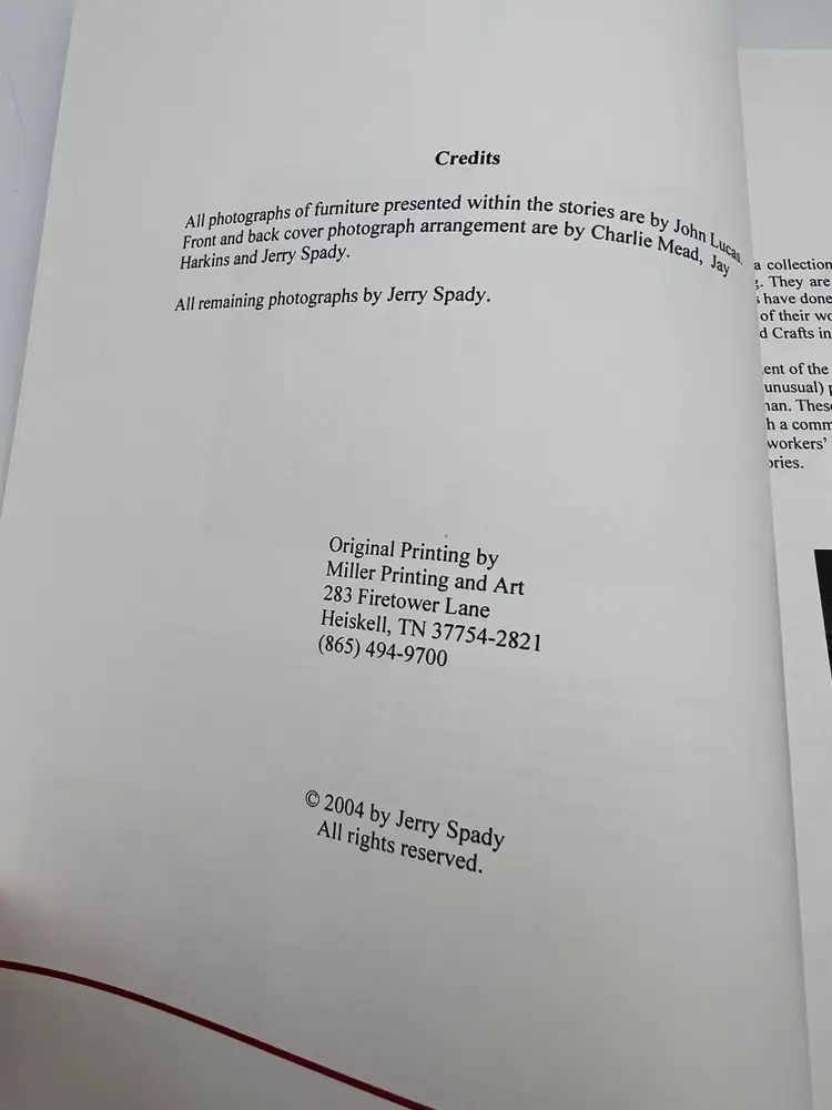 Features: • Book Title: Hillbilly Woodworking: Fine Craftsmanship from the East Tennessee Woodworkers' Guild • Author: Jerry Spady • Publisher: Miller Printing and Art • Year Published: 2004 • Edition: Unknown • Type: Paperback • Dust Jacket: No • Numbered Pages: 75 • Size: 10.75" x 8.5" • Printed In: USA • ISBN: n/a