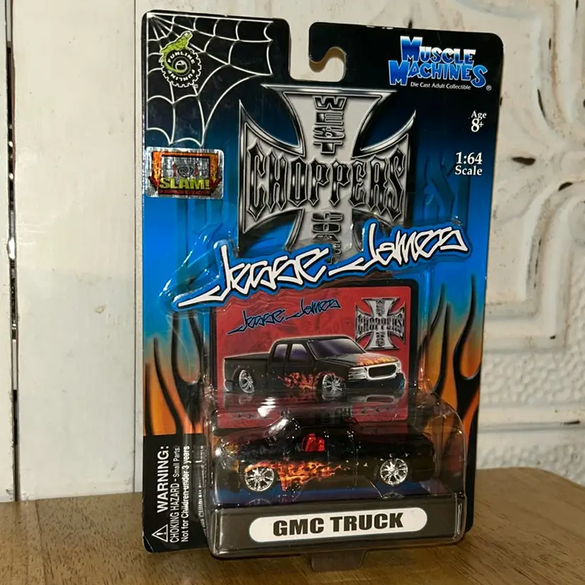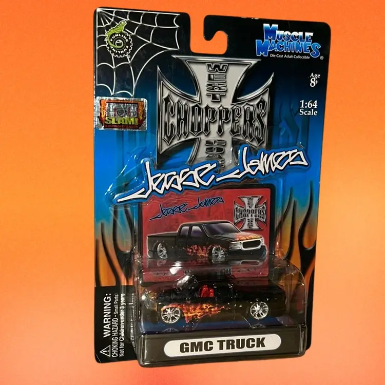 2004 Muscle Machines Jesse James West Coast Choppers BLACK w/ FLAMES GMC TRUCK