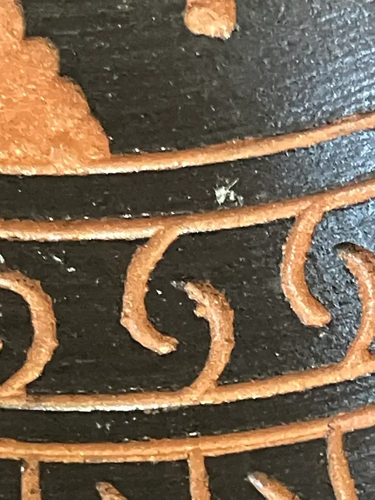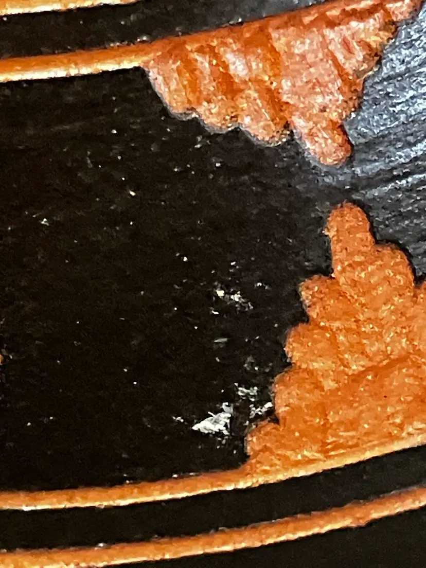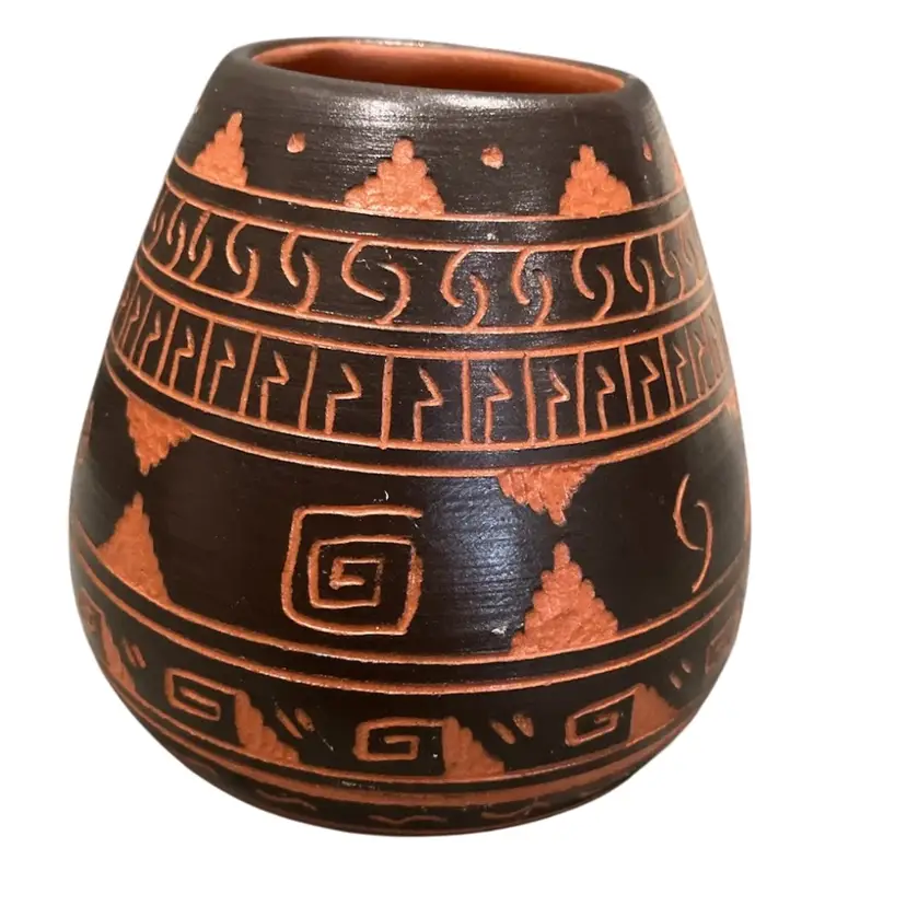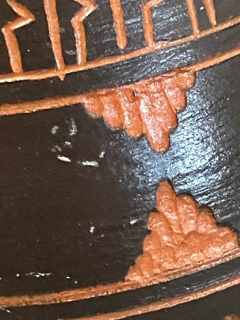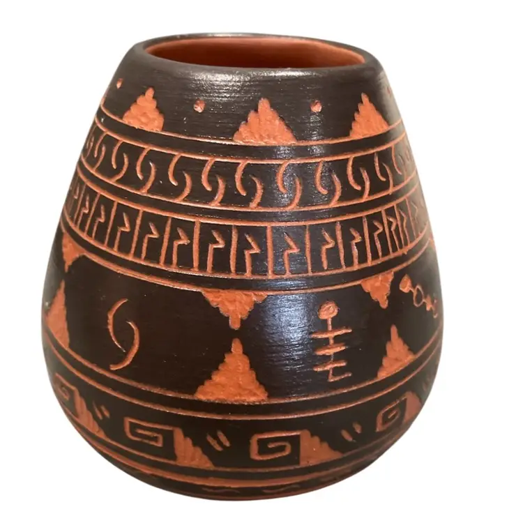 Smaller pot measuring 3.75” tall. Not sure of artist’s name? Has a few white scuffs around outside and bottom. No chips or cracks. Please see all photos for condition thank you.