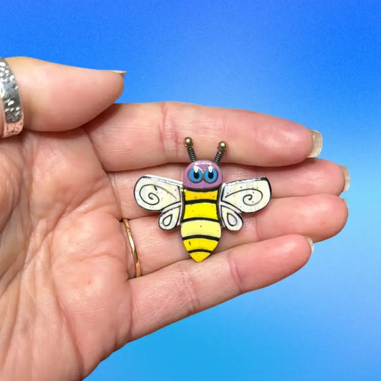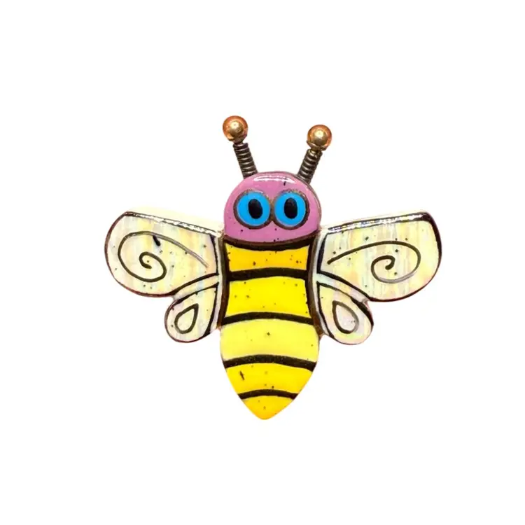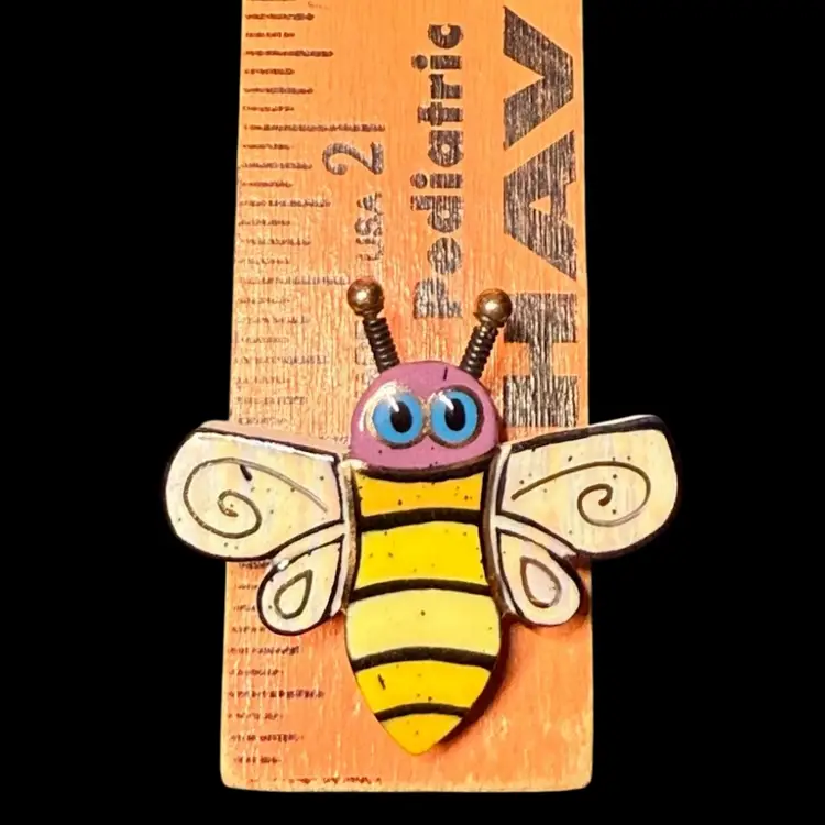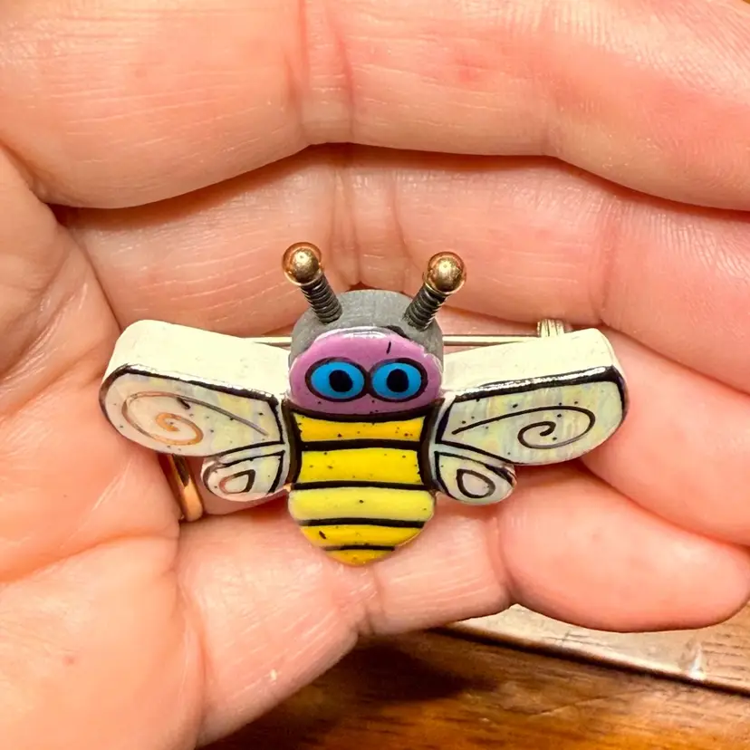 2006 SCB Handmade Ceramic Hand Painted Bee Brooch 1.5”