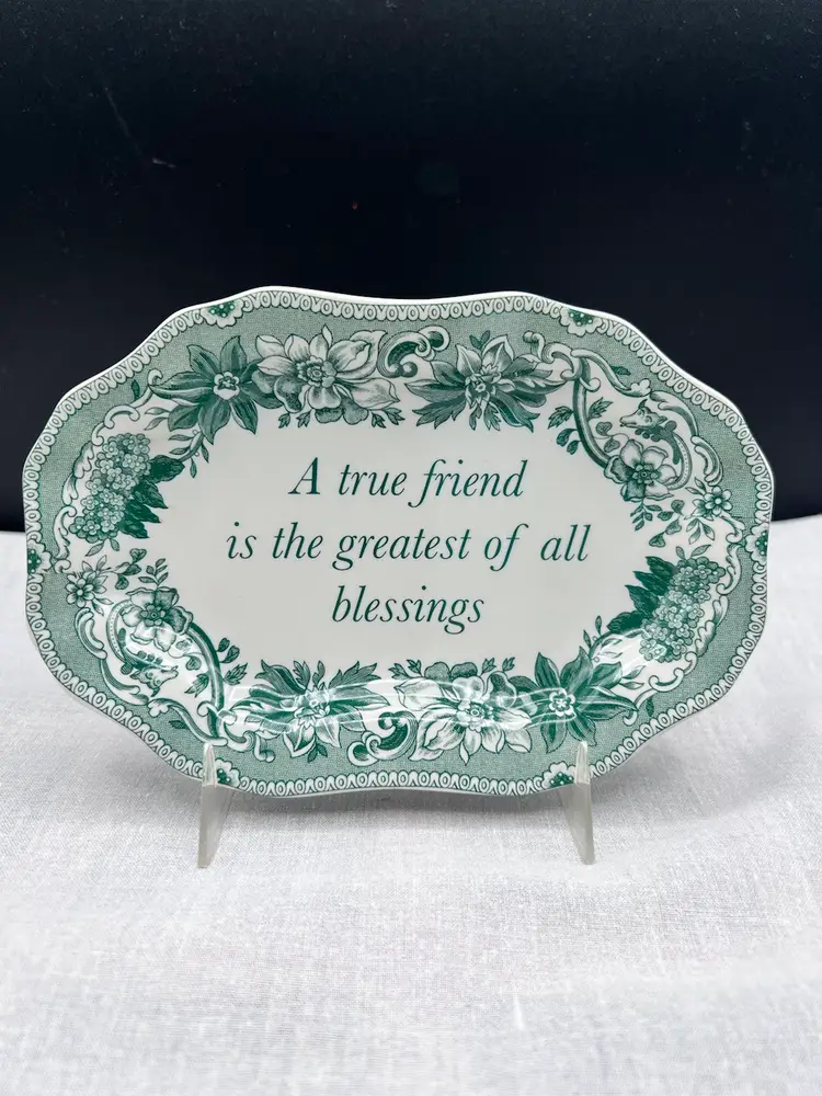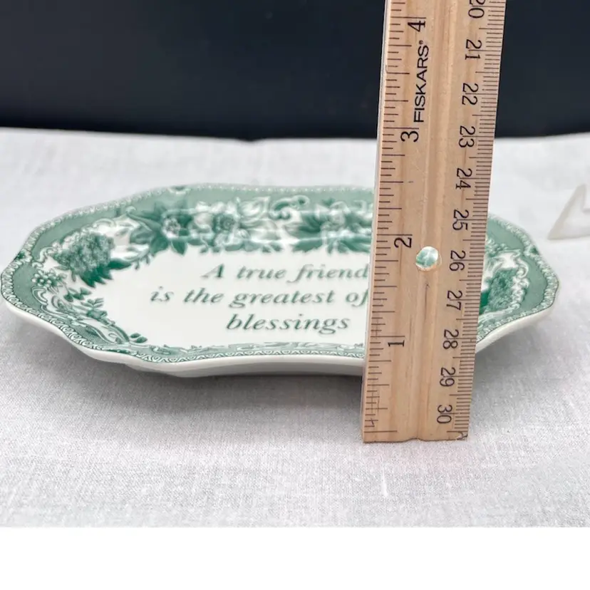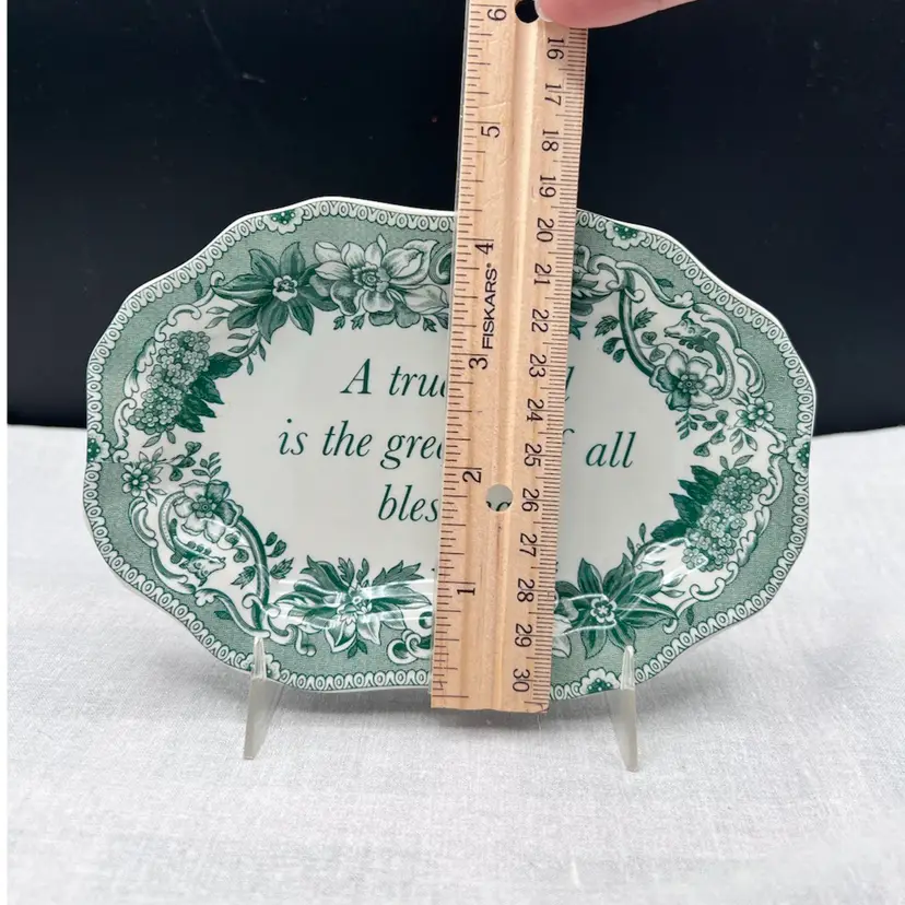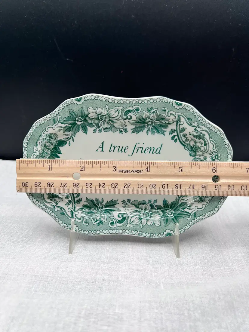 2006 Spode Mementos True Friend Decorative Dish/Trinket Dish Green And White A True Friend Is The Greatest Of All Blessings