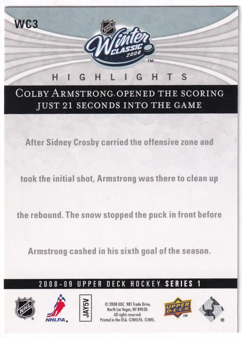 2008-09 Upper Deck Winter Classic #WC3 Colby Armstrong Pittsburgh Penguins