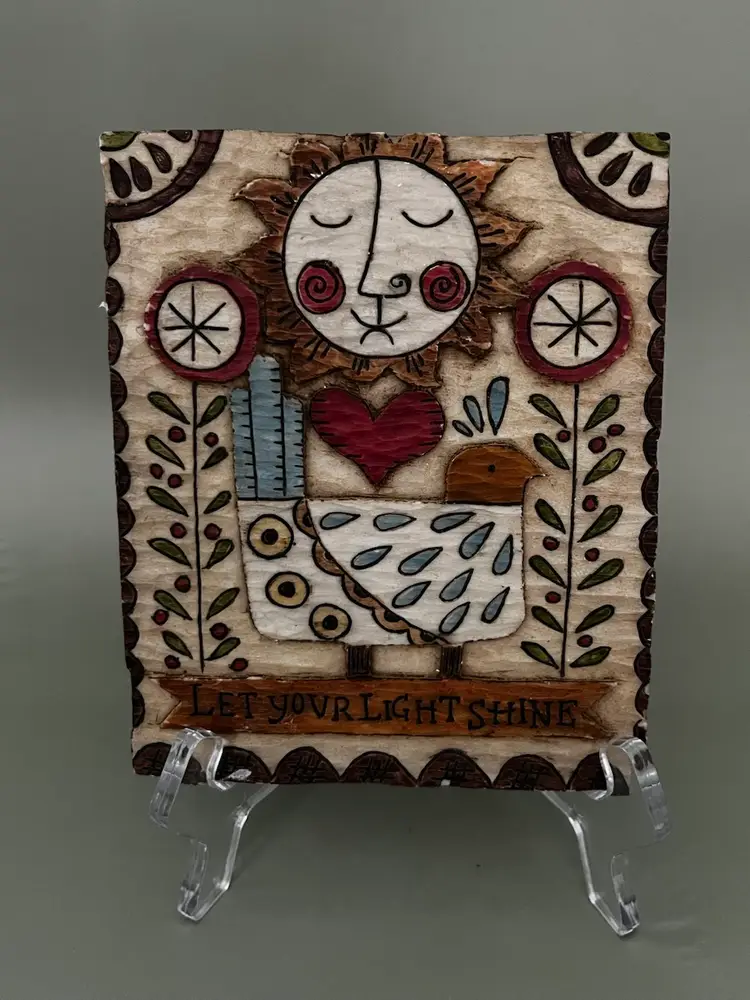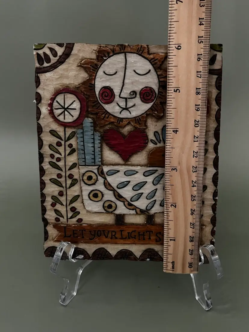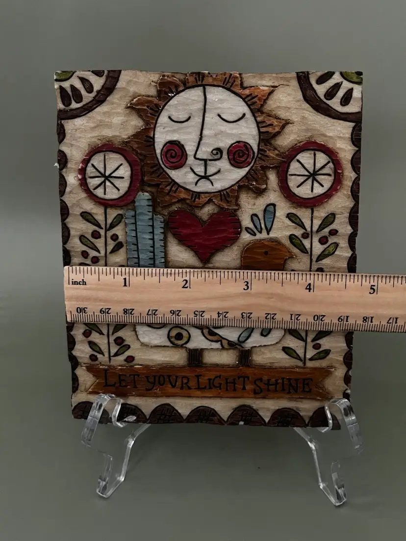 The 2008 Caribou Canyon for DEMDACO 3D Resin Sunshine Wall Plaque is a multicolor rectangular plaque made of resin, measuring 7 3/4" x 6 3/4". It features a 3D design of sunshine, perfect for brightening up any room in your home. The plaque is wall mounted and designed for hanging, making it a stylish addition to any space. Its theme of "Let Your Light Shine" adds a touch of positivity and warmth to your decor. Made in China, this plaque is a lovely accent piece for any room, conservatory, foyer, garage, laundry room, bathroom, kitchen, or bedroom.