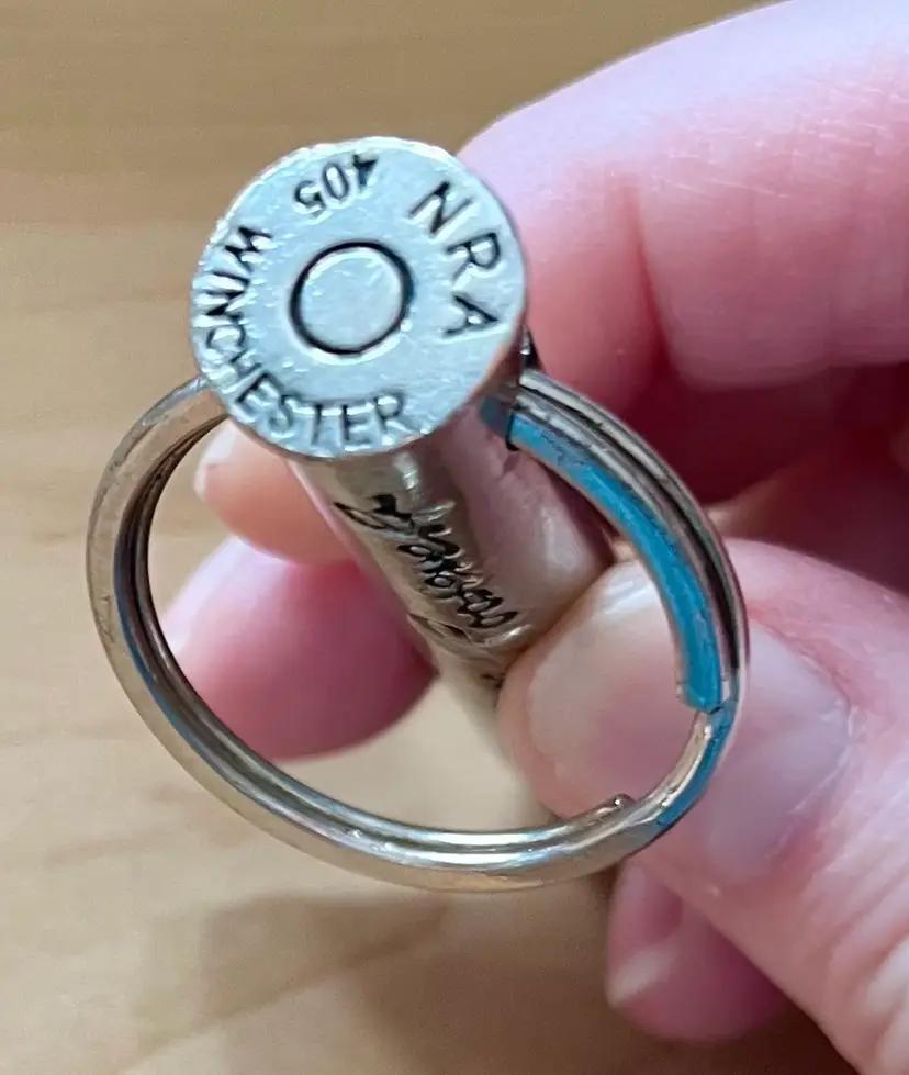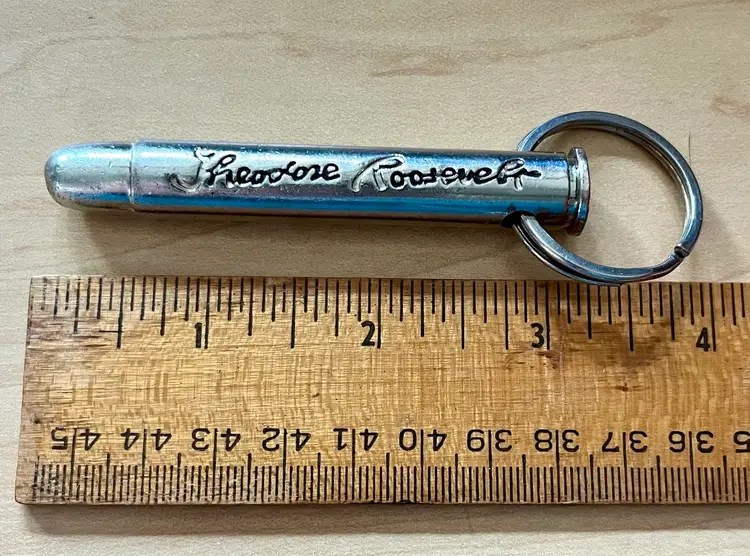 Released in 2008, this keychain celebrates the 150th anniversary of Theodore Roosevelt’s birth (born 1858), commemorating his famous 1909-1910 African safari where he used the Winchester Model 1895 rifle in .405 Winchester, famously calling it his "Big Medicine”.