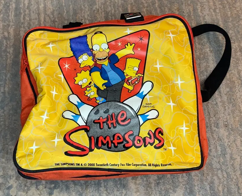 2008 The Simpsons Brunswick Twentieth Century Fox Bowling Ball Bag ( no bowling ball available) Check for overall condition in pictures We haven’t attempted to wash or clean bag .