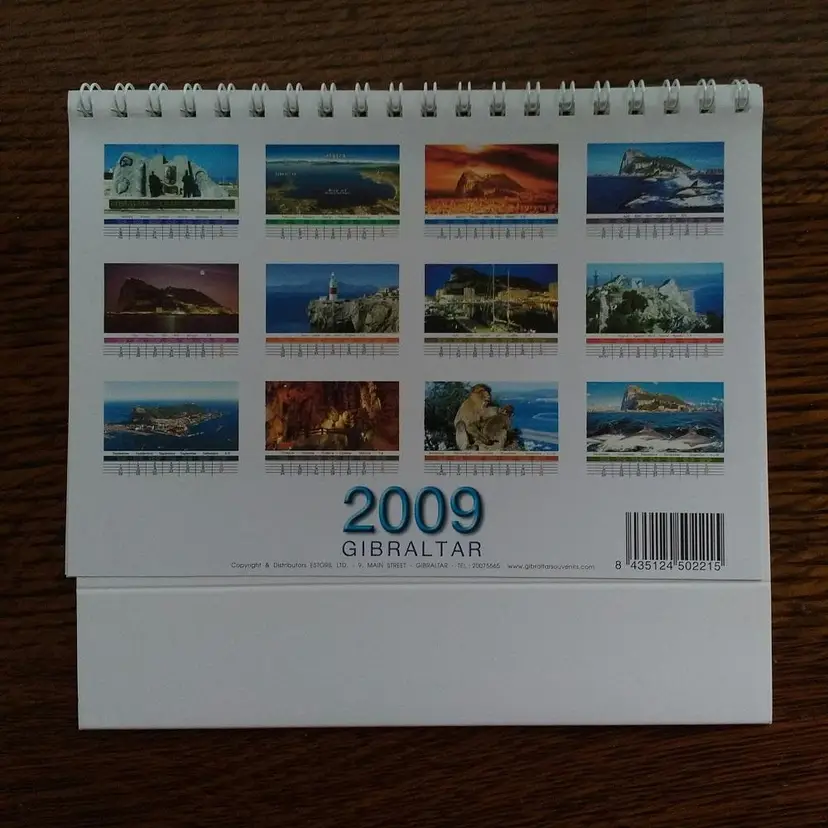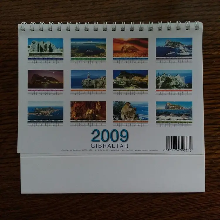 This 2009 Gibraltar Souvenir Picture Calendar is a must-have for collectors of unique and rare items. Produced by Estoril Ltd., this multi-colored calendar features a complete set of months from January to December, each with a captivating picture of Gibraltar's landscapes and attractions. Measuring 17 cm. x 12 cm. and made of durable cardboard material, this original calendar is a perfect souvenir. It showcases the theme of New Year and is in excellent condition. Don't miss out on the opportunity to own a piece of Gibraltar's history.