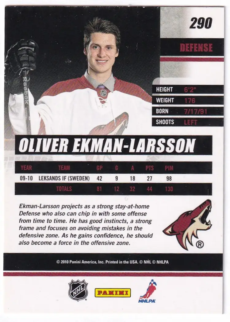 2010-11 Donruss #290 Oliver Ekman-Larsson RC Phoenix Coyotes