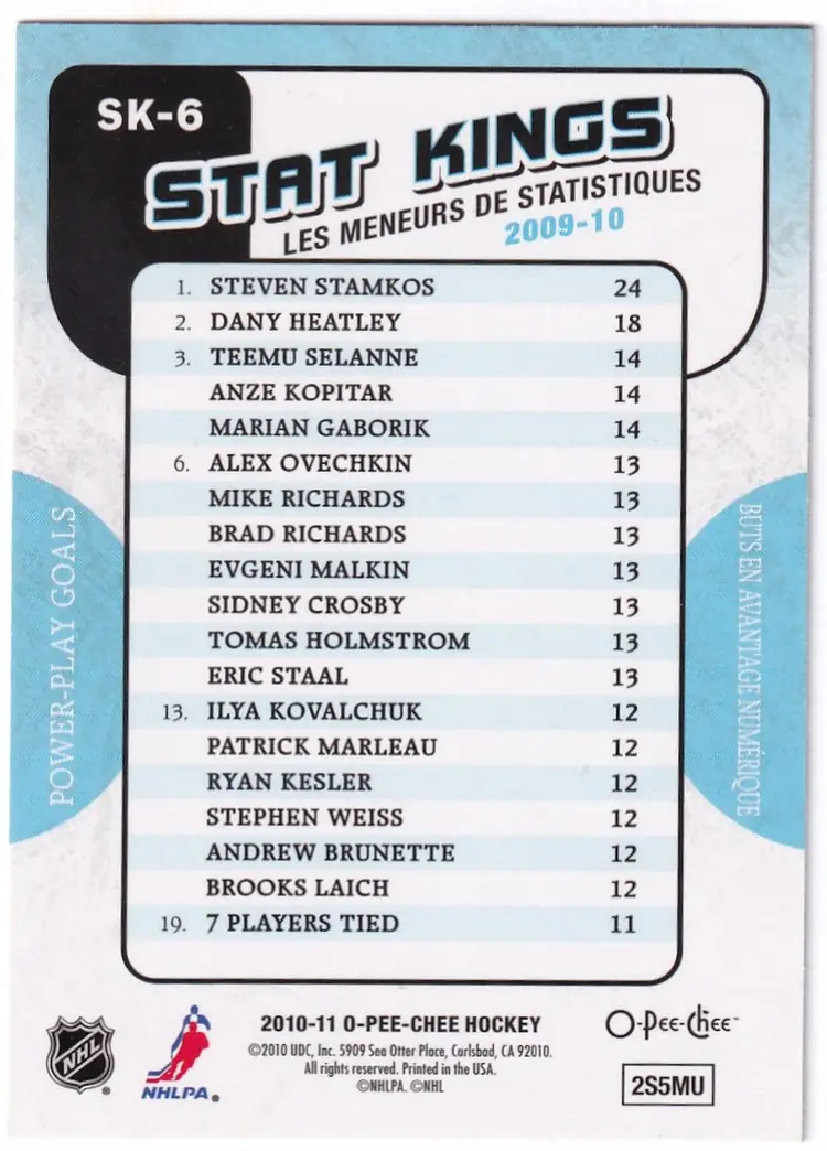 2010-11 O-Pee-Chee Stat Kings #SK6 Steven Stamkos Tampa Bay Lightning