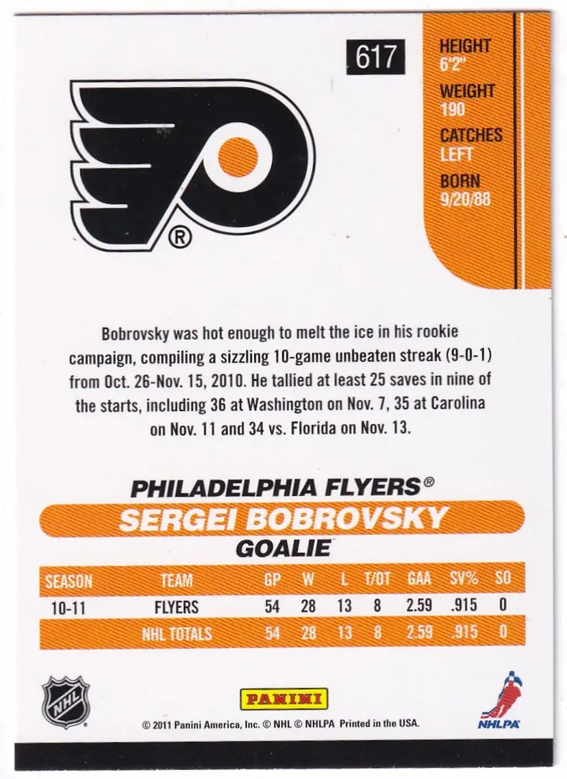 2010-11 Score #617 Sergei Bobrovsky RC Philadelphia Flyers