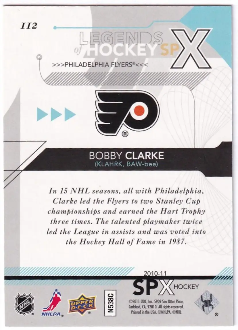 2010-11 SPx #112 Bobby Clarke Philadelphia Flyers Print Run - 999