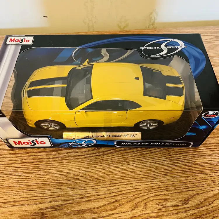 2010 Chevrolet Camaro SS RS Yellow 1/18 Diecast Maisto Black Center Stripes