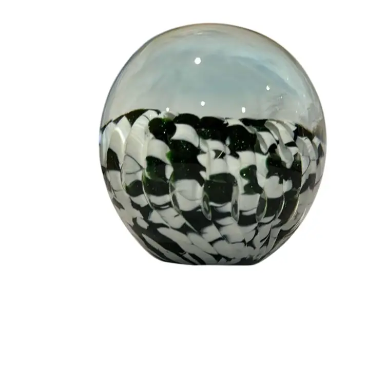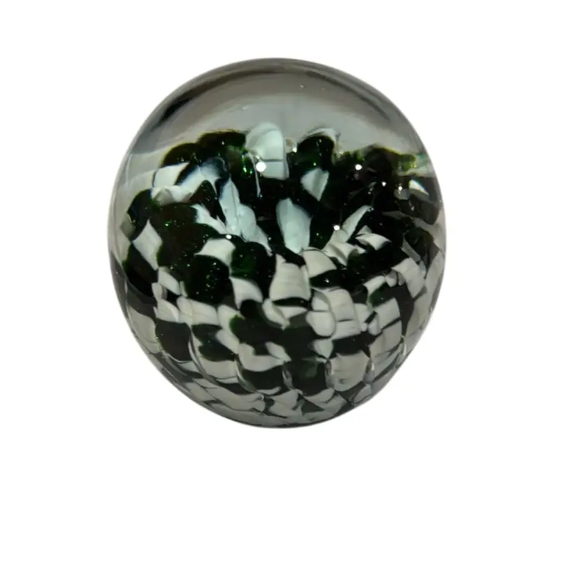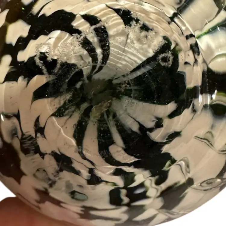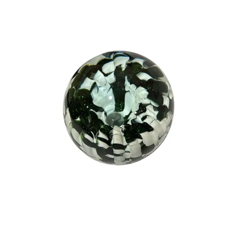 2010 Signed & Dated Titan Art Glass Fayetteville AR - Shimmer Sparkle Green & Woven White With Center Controlled Bubble - 3”