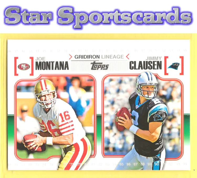 This is a nice example of a 2010 Topps #GL-MC Joe Montana / Jimmy Clausen Gridiron Lineage .Other important information about this card: In Joe Montana / Jimmy Clausen played for the Kansas City Chiefs.Please check out our other listings for more great cards.