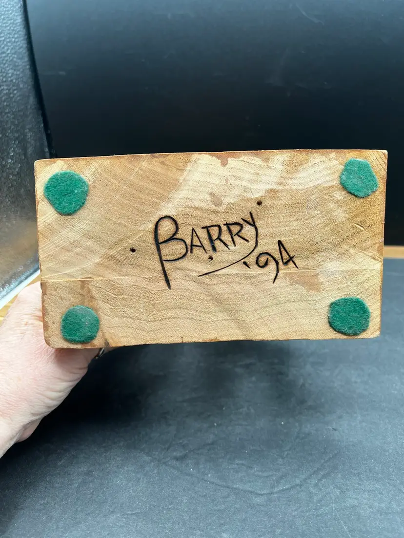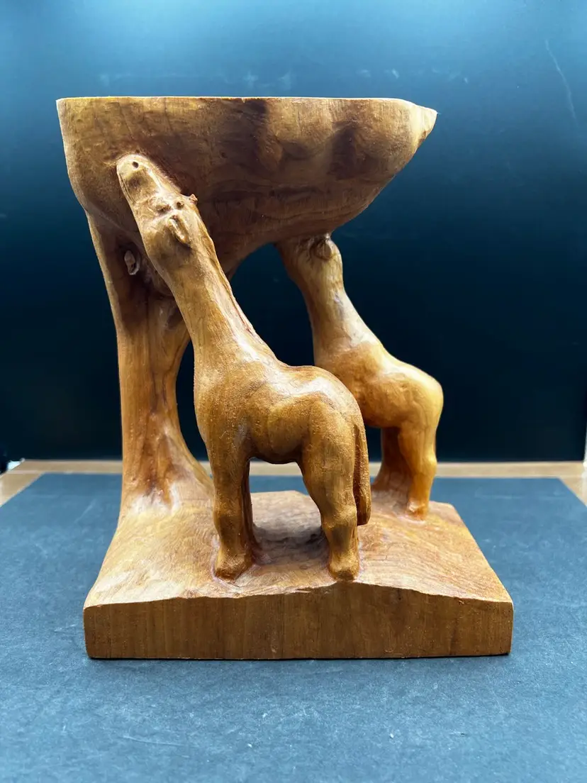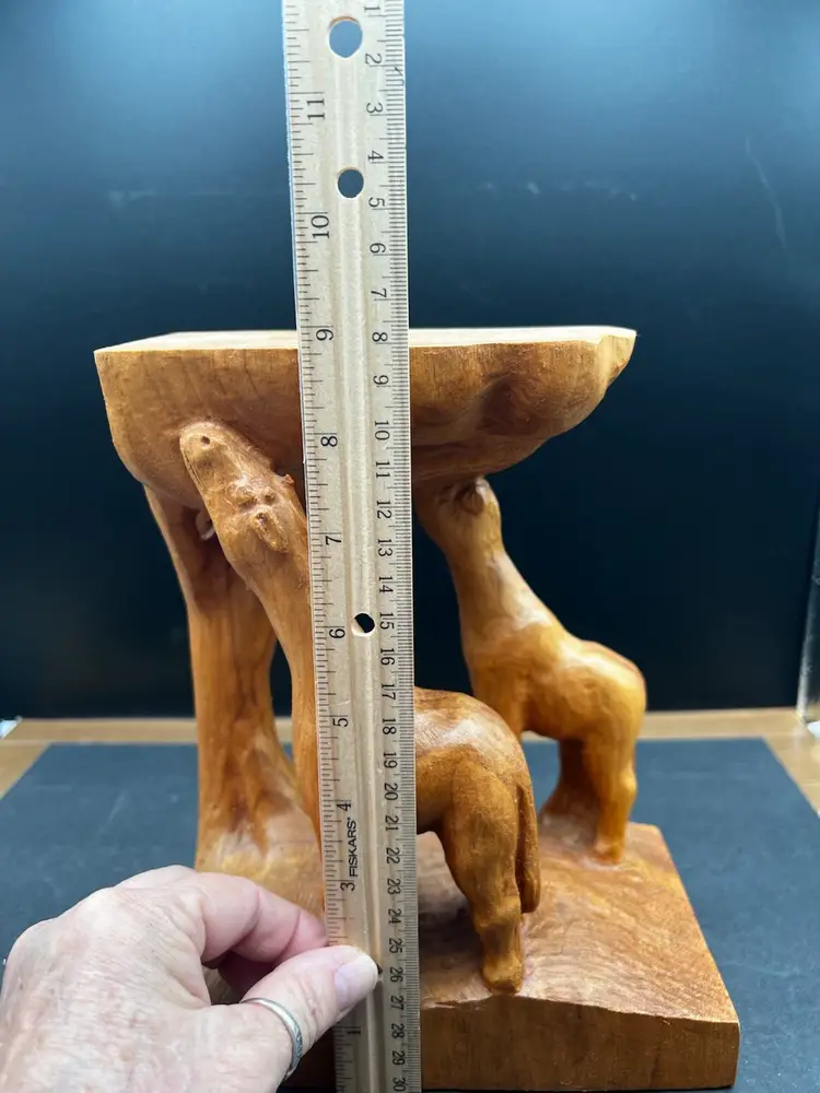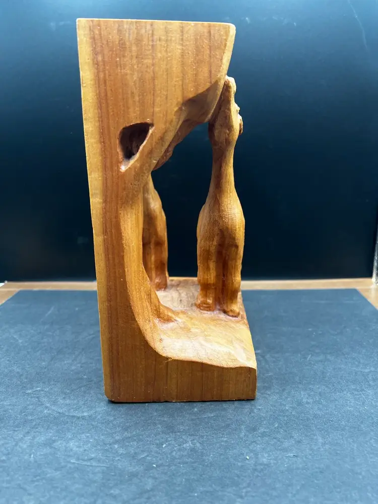 Vintage Signed Hand Carved Giraffe Statue/Single Bookend 9” Tall X 7” X 6” In Very Good Condition. Signed Barry ‘94 On Bottom
