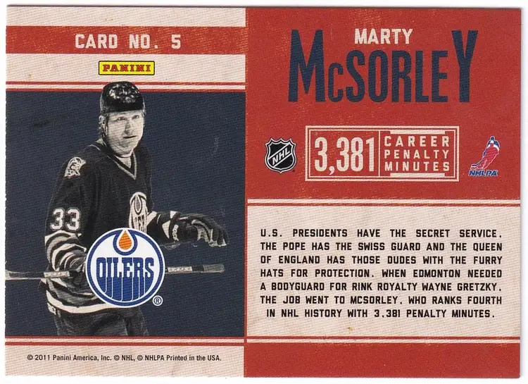 2011-12 Pinnacle Tough Times #5 Marty McSorley Edmonton Oilers