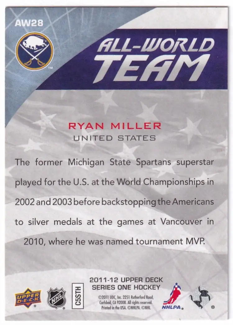 2011-12 Upper Deck All World Team #AW28 Ryan Miller Buffalo Sabres