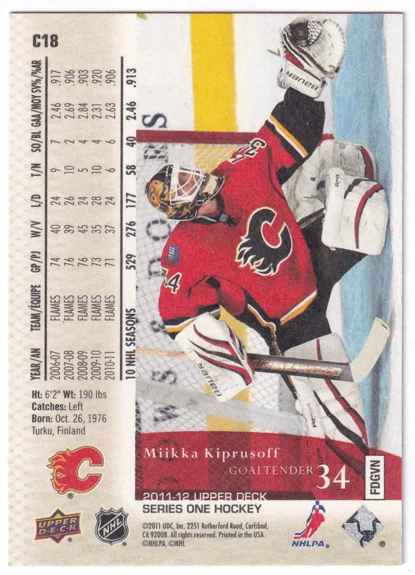 2011-12 Upper Deck Canvas #C18 Miikka Kiprusoff Calgary Flames
