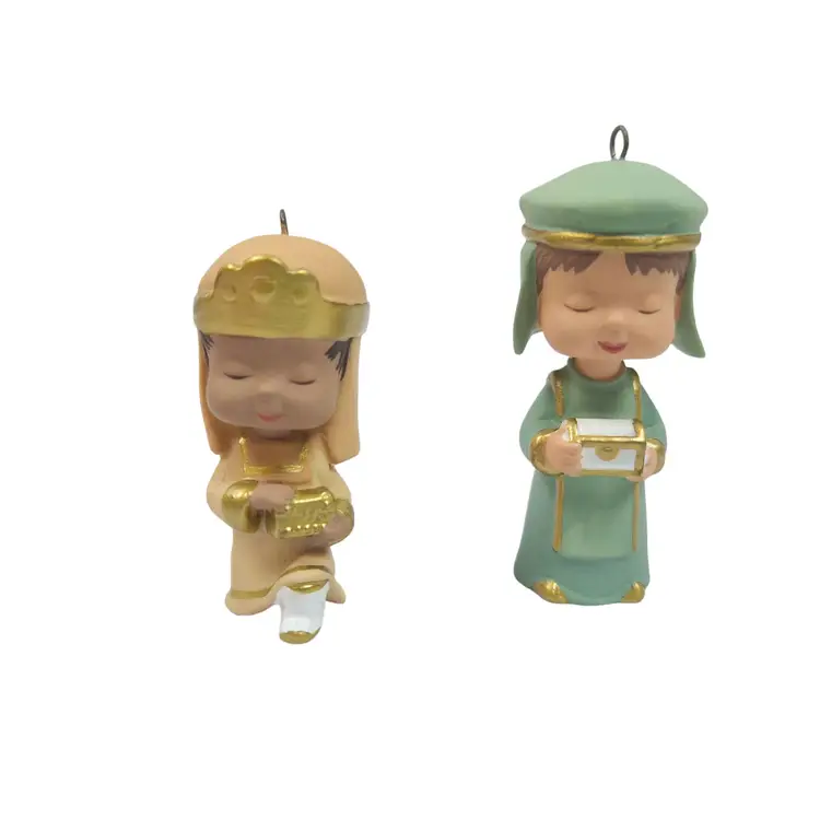2011 Hallmark Seeking The King Porcelain Set of 2 Keepsake Ornaments KOC IOB QXC5019 Celebrating the Christmas Story, this pair of porcelain shepherds make the third set of ornaments inspired by the popular Mary's Angels series in this nativity scene collection. Keepsake artist Robert Chad began the club-exclusive collection in 2009 with Newborn Blessing (Sold Separately). In 2010 the three kings were added with Gifts We Bring (Sold Separately). This Keepsake club ornament was originally offered as a club-exclusive ornament for 2011. Artist Robert Chad Size Approx 2"& 2 7/8" H
