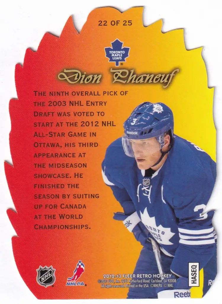 2012-13 Fleer Retro Flair Showcase Hot Shots #22 Dion Phaneuf Toronto Maple Leafs