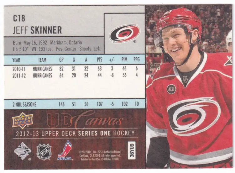 2012-13 Upper Deck Canvas #C18 Jeff Skinner Carolina Hurricanes