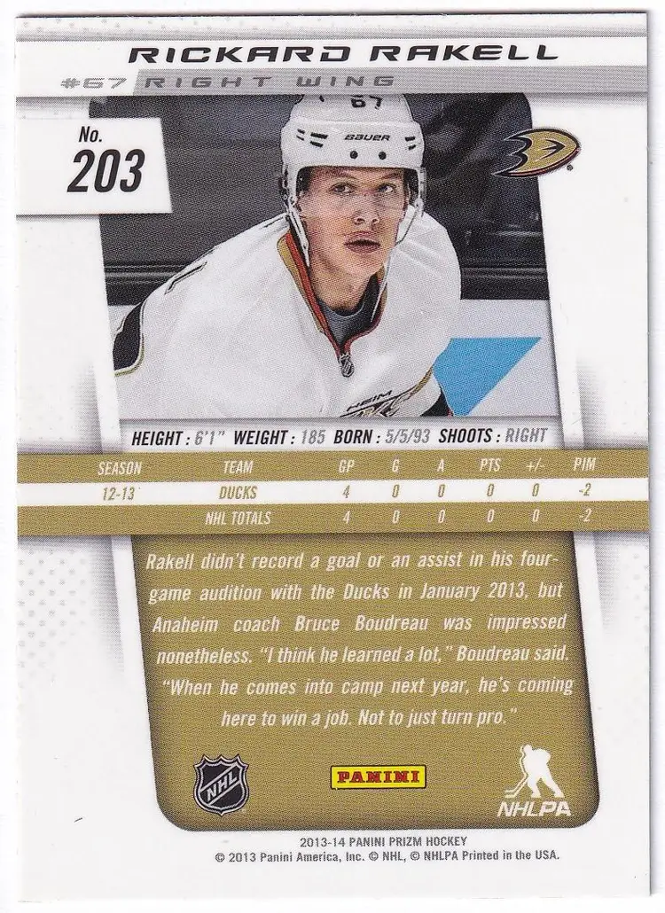2013-14 Panini Prizm #203 Rickard Rakell RC Anaheim Ducks
