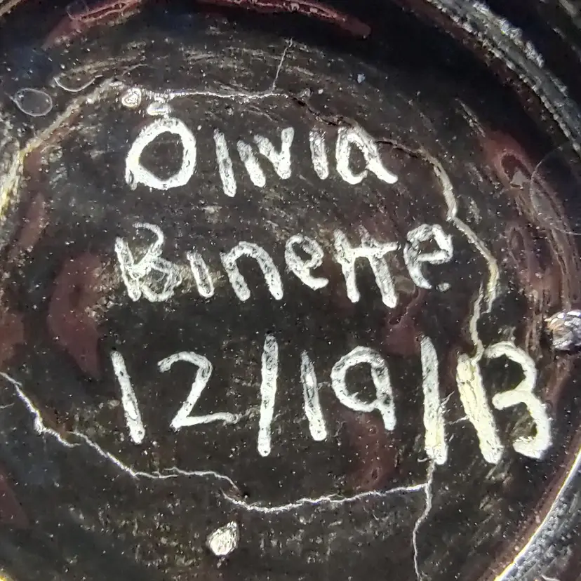 2013 Hand Crafted Pottery Jewelry/ Trinket Bowl. Signed By Artist Olivia height 3" x diameter 4". Made in Maine,USA