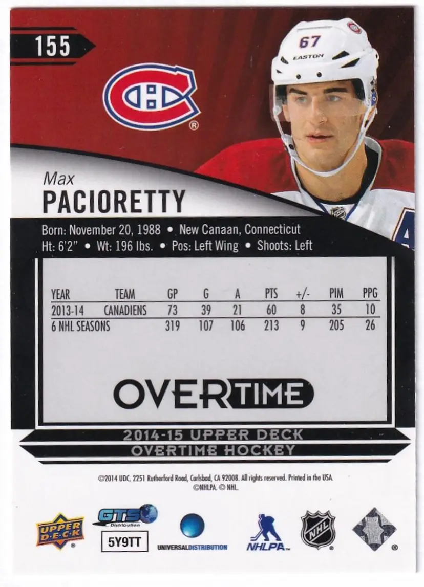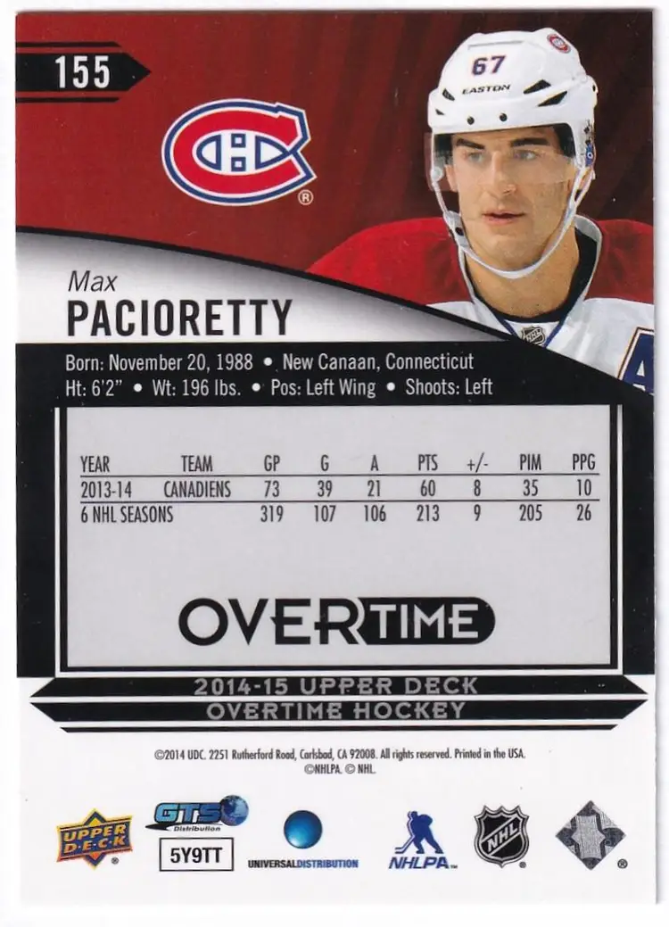 2014-15 Upper Deck Overtime Blue #155 Max Pacioretty Montreal Canadiens
