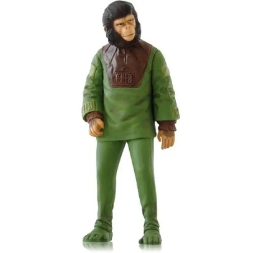 This Hallmark Keepsake Ornament from the year 2014 features Cornelius, the beloved character from the iconic 1968 film "Planet of the Apes." Sculpted with intricate detailing, this ornament captures Cornelius in his classic green outfit, showcasing his thoughtful yet courageous expression. Designed as a decorative addition to your Christmas tree, it honors Cornelius' role as an intelligent, compassionate ape who advocated for harmony and wisdom. Created by Hallmark artist Kristina Gaughran, this officially licensed product by 20th Century Fox is part of the collectible Keepsake series, ensuring its authenticity and quality. • Size approx 4 1/4" x 1 3/4" • Officially licensed Planet of the Apes merchandise