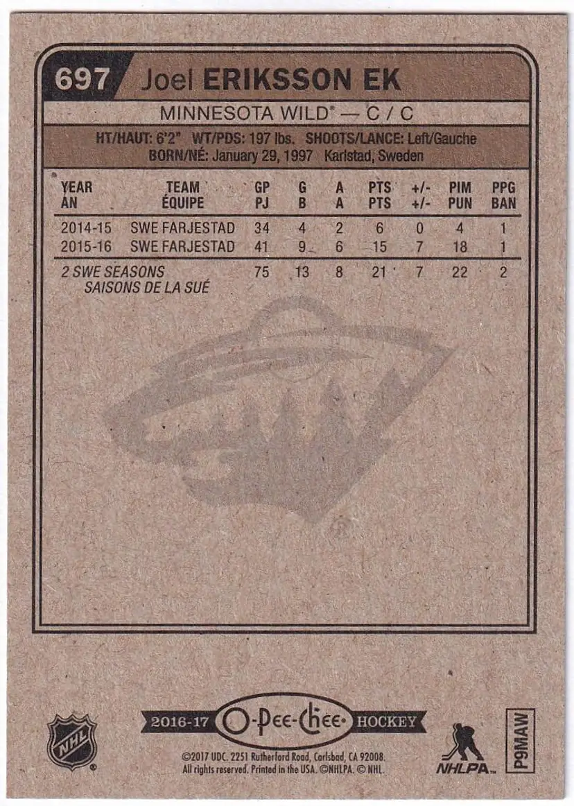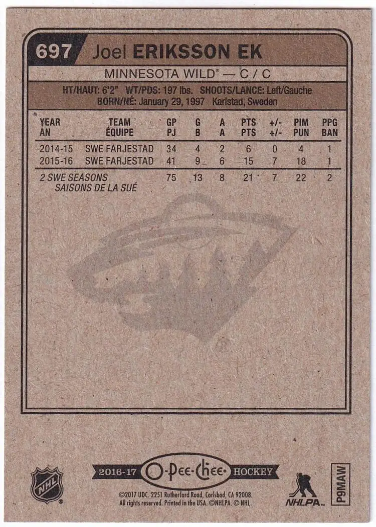 2016-17 O-Pee-Chee #697 Joel Eriksson Ek RC Minnesota Wild