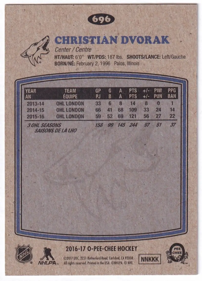 2016-17 O-Pee-Chee Retro #696 Christian Dvorak Arizona Coyotes