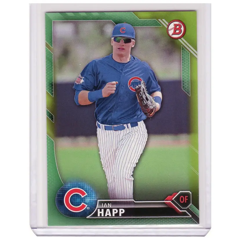 You are bidding on a 2016 Bowman Prospect Ian Happ green parallel #72/99 in overall pack-fresh condition. A nice pick up for any Happ or Cubs fan's collection.