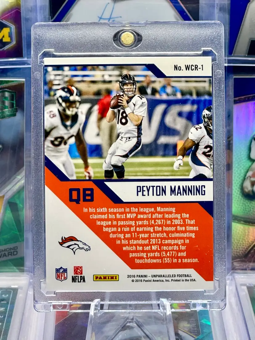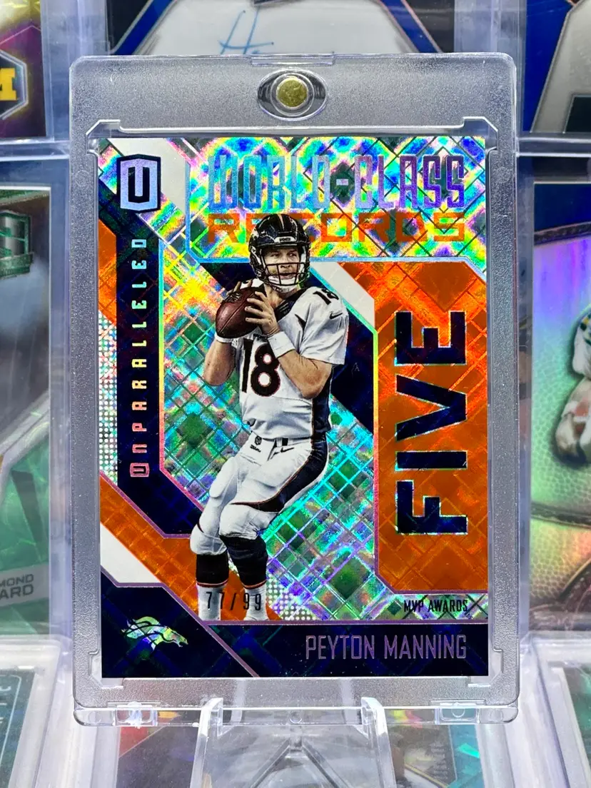 Ships FAST via USPS Ground Advantage within 1 business day, sometimes same day. Ships with penny sleeve, toploader, and team bag. Feel free to reach out with any questions. Thank you! Peyton Manning 2016 Panini Unparalleled Orange COLOR MATCH World Class Records Serial Number Numbered #d #’d /99 Foil Refractor Holo Insert Parallel Indianapolis Colts Tennessee Volunteers Denver Broncos QB Quarterback Offense Offensive Player Rare NFL Football Card