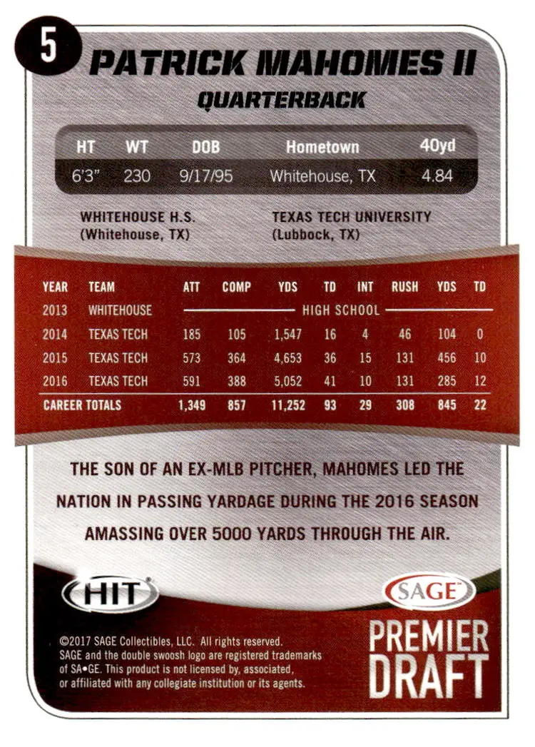 2017 SAGE HIT #5 Patrick Mahomes II