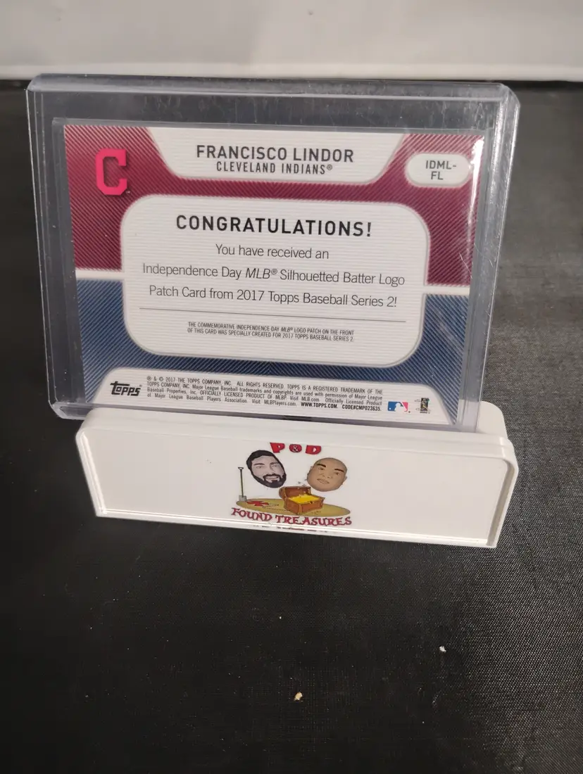 This card has a commemorative logo patch from silhouetted batter from Independence Day it's numbered out of 99