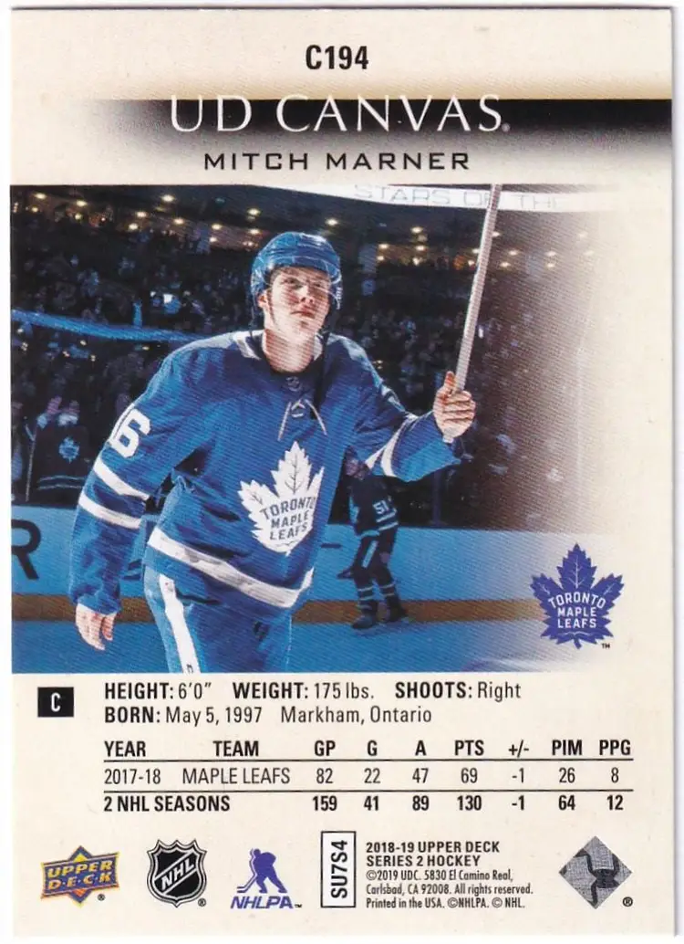 2018-19 Upper Deck Canvas #C194 Mitch Marner Toronto Maple Leafs