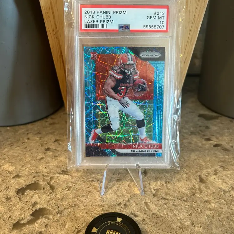 2018 Nick Chubb Rookie Card Prizm Rookie Blue Lazer SP PSA 10. Ships BMWT for $5