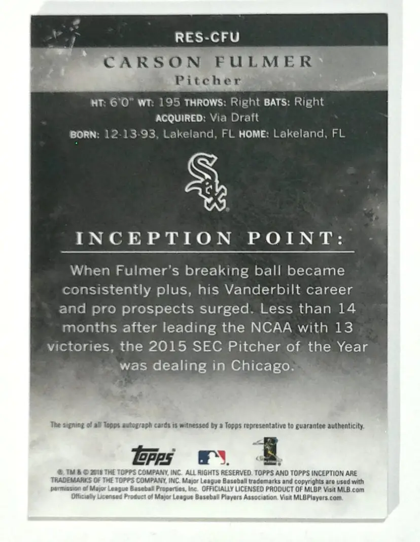 2018 Topps Inception RES-CFU Carson Fulmer Auto 247/299 Chicago White Sox Autograph