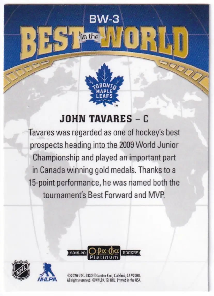 2019-20 O-Pee-Chee Platinum Best in the World #BW3 John Tavares Toronto Maple Leafs