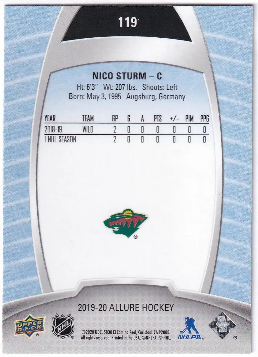 2019-20 Upper Deck Allure #119 Nico Sturm SP Minnesota Wild