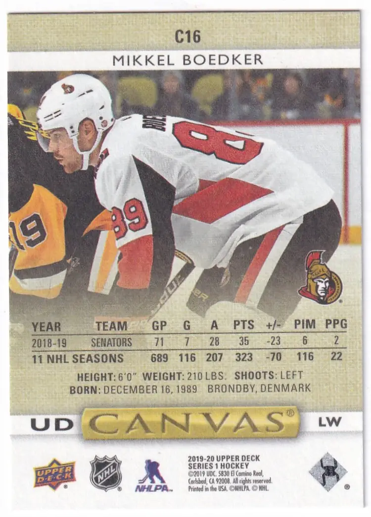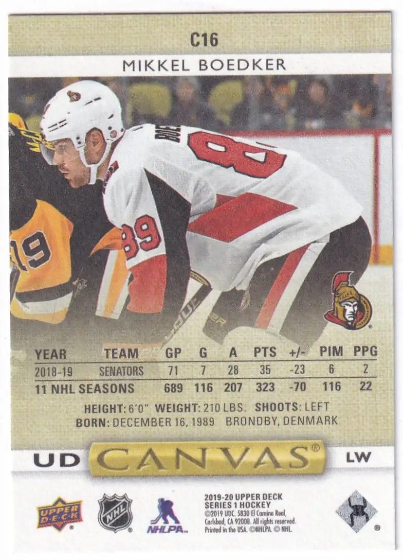 2019-20 Upper Deck Canvas #C16 Mikkel Boedker Ottawa Senators