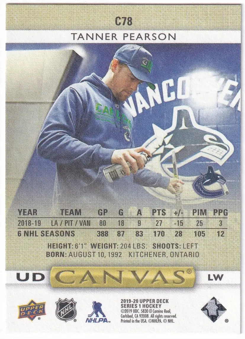 2019-20 Upper Deck Canvas #C78 Tanner Pearson Vancouver Canucks