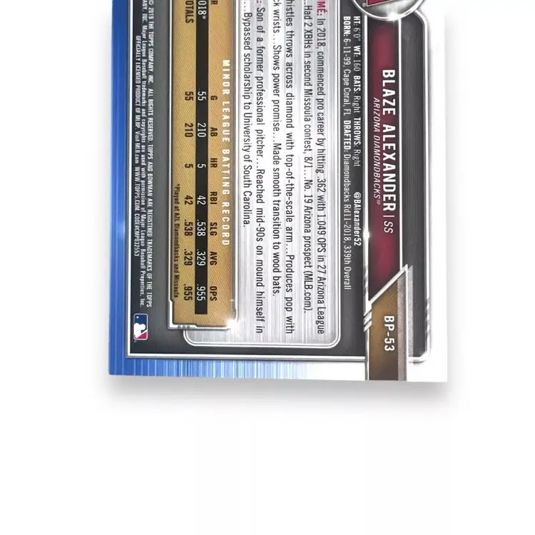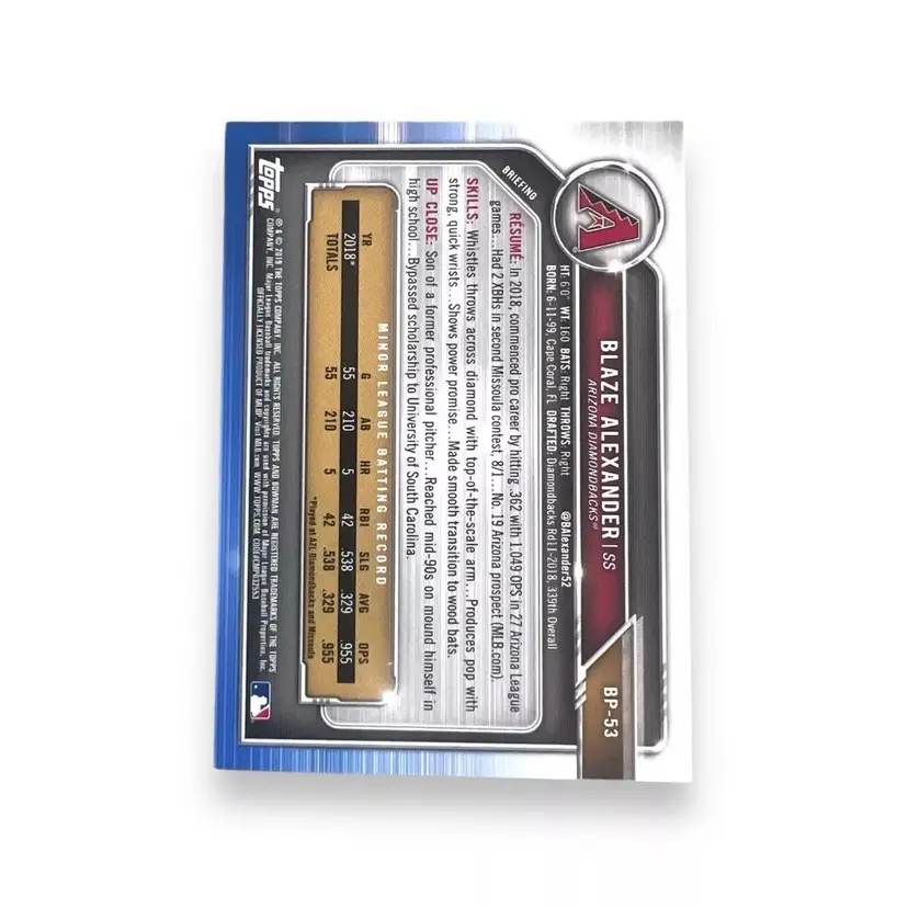Here We Have a 2019 Bowman Blaze Alexander 1st Bowman Purple 165/250 BCP-53 Arizona Diamondback