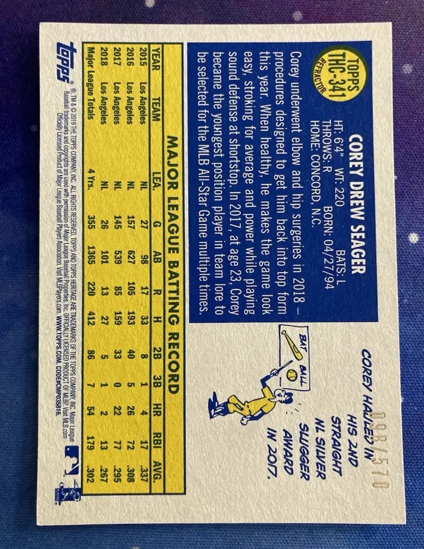 2019 Corey Seager Topps Heritage Chrome Refractor /570 #THC-341 Dodgers Rangers